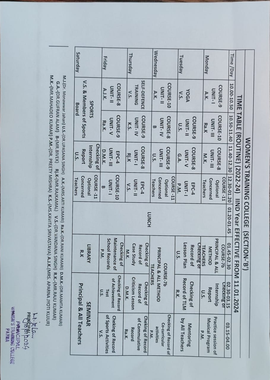Time Table (ROUTINE) (2022-24) 2ND Year EFFECTIVE FROM 11.01.2024 (SECTION - "B")